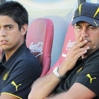 Jorge Da Silva, el entrenador aurinegro, junto a su hijo Jorge, también, que ingresó a la cancha por primera vez en su nueva función de ayudante del cuerpo técnico.