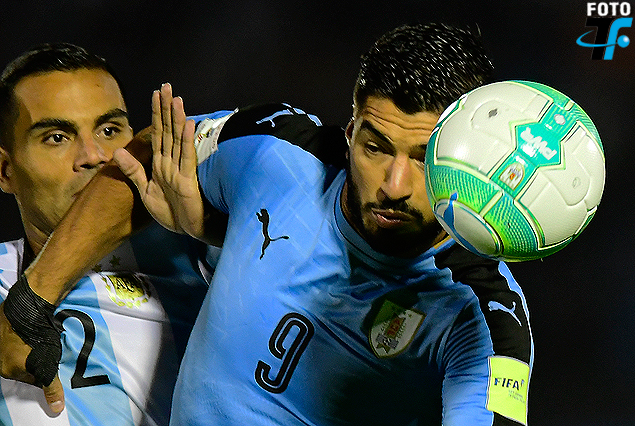 Uruguay adoptó las precauciones defensivas con suma atención procurando desbaratar los avances, con especial atención sobre Messi marcado al hombre en la zona por Álvaro González. Nandez cumplía idéntico libreto sobre Dybala. Al recuperar el esférico los orientales intentaban hacer buen uso del mismo tratando de retenerlo para lanzar el contragolpe. La receta funcionó. Por intermedio de esa vía Uruguay llevó peligró en varias ocasiones a la zona defensiva argentina. Cristian Rodríguez se demoró con una pelota servida por Suárez hacia la izquierda para su pierna hábil. Otra incursión –también por la zurda- culminó con el centro rasante que interceptó Fazio cuando por la derecha ingresaba sólo Cavani. Una tercera incidencia generada por una pelota quieta que envió Suárez al área terminó en gol. El rebote dejó sólo Godín ante el arco convirtiendo el tanto anulado por posición adelantada. Correcta la sanción del árbitro peruano. Se produjo otra más en córner ejecutado en buena forma por Vecino –desde la izquierda-, sin consecuencias. El reloj marcaba el cuarto de hora.