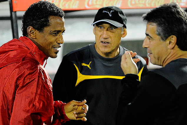 Abrazo… Pablo Bengoechea, Oscar Aguirregaray y Cafú Barbosa, en el abrazo del reencuentro. Los integrantes del cuerpo técnico aurinegro y el zaguero rojo de 43 años, compartieron plantel en el Peñarol Campeón Uruguayo de 1999.
