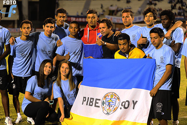 Ídolo… Kevin Ramírez, profeta en su tierra. Ídolo de los tricolores riverenses, previo al juego en pleno campo, posó gustoso junto a los botijas de la Escuela de fútbol “Pibe soy”, que mantiene una intensa actividad social, asistiendo en distintos rubros a casi 5.000 chicos del departamento.