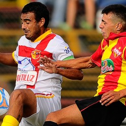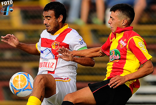Fernando Cañarte con el balón es marcado por Mitchel Duarte.