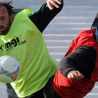 Ernesto Dudok e Ignacio González en el amistoso de Racing y Danubio.