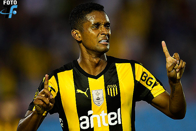 El ecuatoriano Fidel Martínez, en la carrera del festejo del primer gol aurinegro.