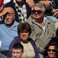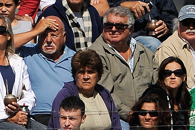 Raúl Rodríguez, presidente de Racing, el domingo por la mañana en la tribuna del Parque Capurro, acompañado por la parcialidad cervecera.