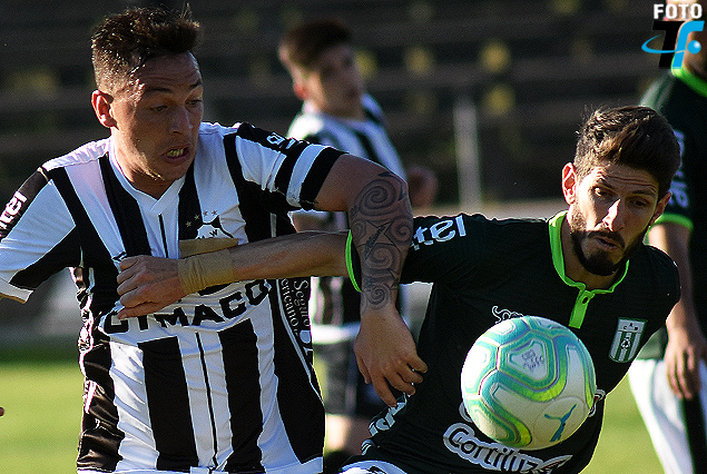 Adrián Colombino (Wanderers) e Ignacio Nicolini (Racing) en la disputa del balón.