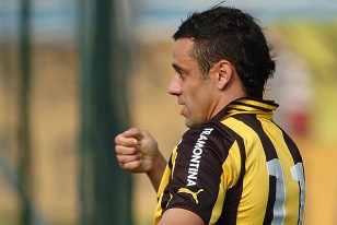 Fabián Estoyanoff en el festejo del primer gol carbonero.