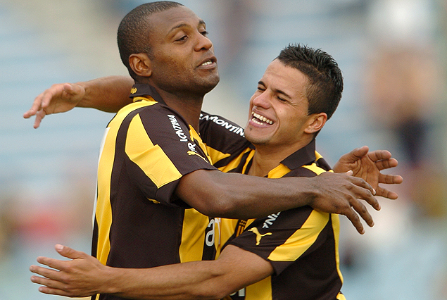 Marcelo Zalayeta y Nicolás Raguso abrazados en el tercer gol.