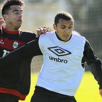 Paul Dzeruvs en plena acción el martes a la mañana en el amistoso ante la tercera de Danubio. Incluso, fue el autor de uno de los goles de su equipo.