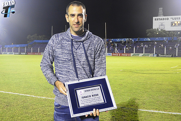 RECONOCIMIENTO: De la Directiva de Defensor Sporting a Ignacio “Nacho” Risso. El presidente de los violetas, Daniel Jablonka, entregó una plaqueta al ex delantero por la trayectoria y agradecimiento en nombre del club. Risso ahora asumirá en Defensor como técnico en Divisiones Juveniles.