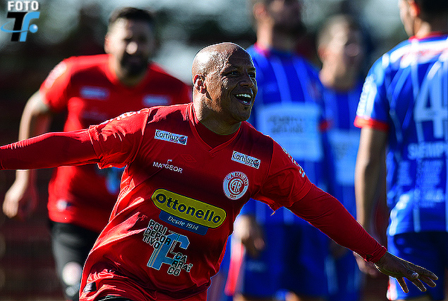 Héctor "Romario" Acuña en el festejo de gol para Rentistas ante Central.