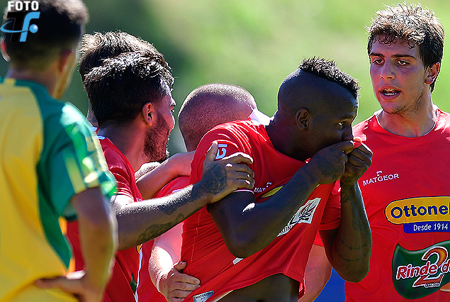 Federico Pintos en el festejo de gol. Rentistas fue demoledor en el clásico.