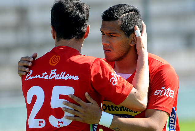 Hugo Soria festeja su gol con José Varela.