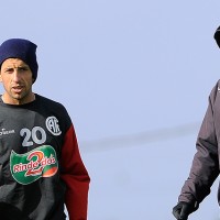 Marcelo Fernández y el técnico Adolfo Barán el jueves en el entrenamiento de Rentistas.
