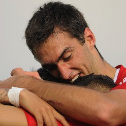 Gustavo Alles festeja su gol de apertura.
