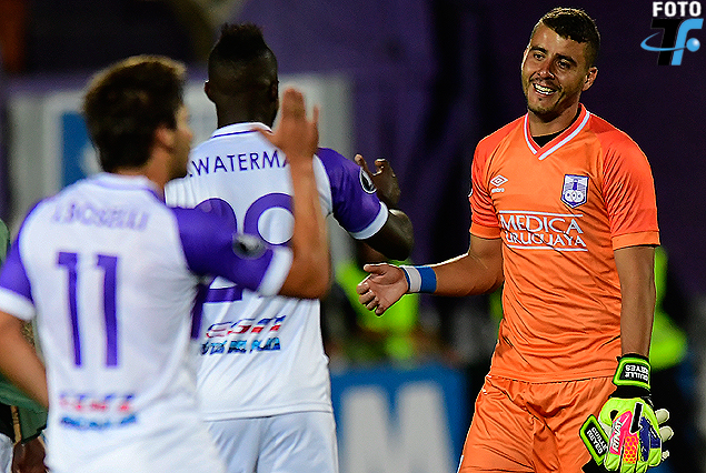 Juan Boselli felicita a Guillermo Reyes. El arquero fue el mejor.