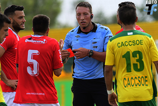Diego Riveiro en la tarjeta roja a Rafael Alberti, volante de Rentistas, la primera de las seis.