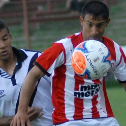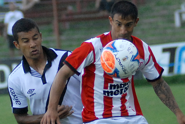 Gonzalo González en la marca de Jonathan Ramírez que intenta dominar el balón.