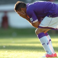 Aníbal Hernández se tapa la cara con su manos. Es la imagen de la desazón violeta.