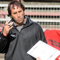 Guillermo Almada, entrenador de River Plate, en la intensidad del trabajo.
