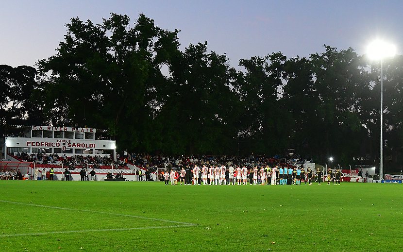 Primer tiempo de poco y nada. Con un ritmo muy entrecortado por las faltas y los constantes cortes de juego, el partido se hizo chato y aburrido. Pero, además, a esto se le sumó la enorme imprecisión de ambos equipos, que perdieron reiteradamente la pelota producto de malos pases e ideas nulas en la producción. No hubo situaciones claras de peligro, excepto un cabezazo de Gonzalo Camarda que atajó bien Washington Aguerre y un remate de Maximiliano Silvera. Mucha fricción, muchos reclamos, muy poco fútbol.