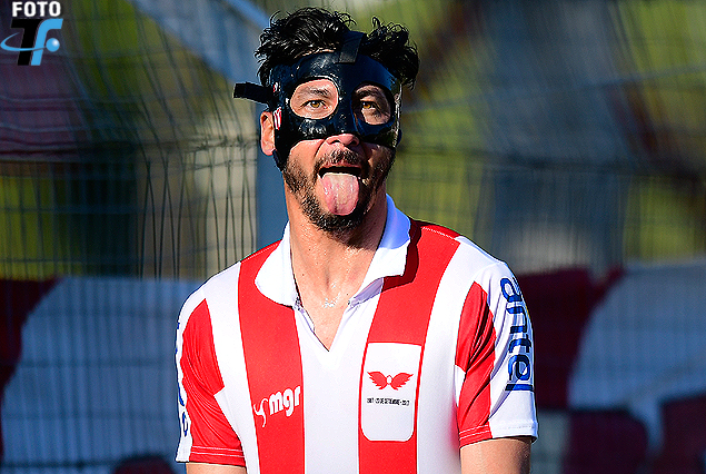 Juan Manuel Olivera dio la cara con el gol, el delantero, de la máscara de protección, al segundo darsenero.