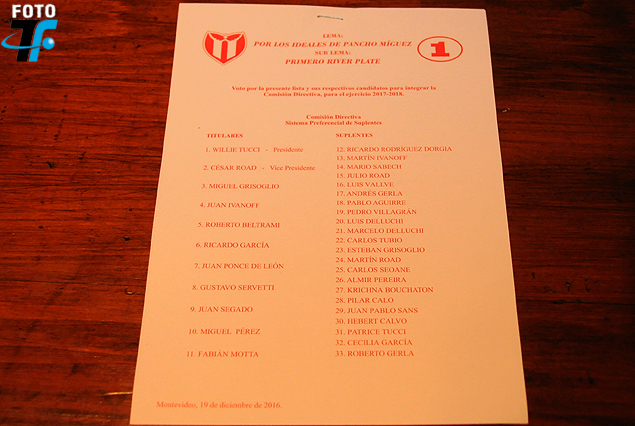 La lista 1 ganó las elecciones en River Plate.