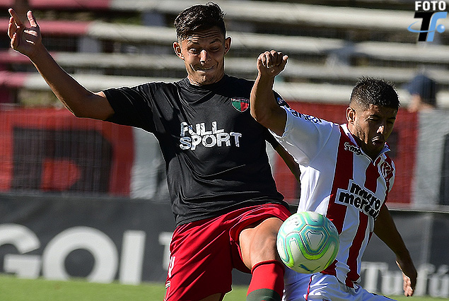 Guillermo Fratta (Boston River) disputa la pelota ante Bruno Martín Correa (River Plate).