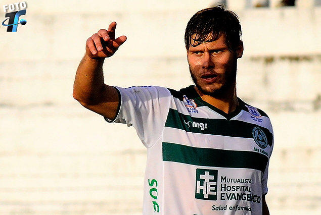 Germán Rivero en el festejo del primer gol.