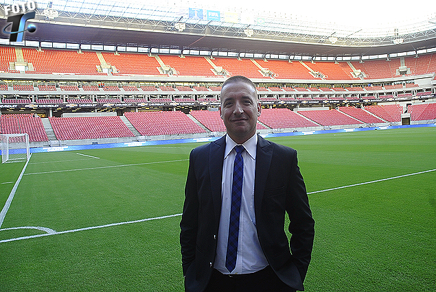 Rodrigo Romano captado hace instante en el estadio Arena Pernanbuco donde se jugara el partido entre Uruguay y Brasil, el No. 200 de la selección que relatará desde que, en 1999, inició sus trabajos para Tenfield S.A.