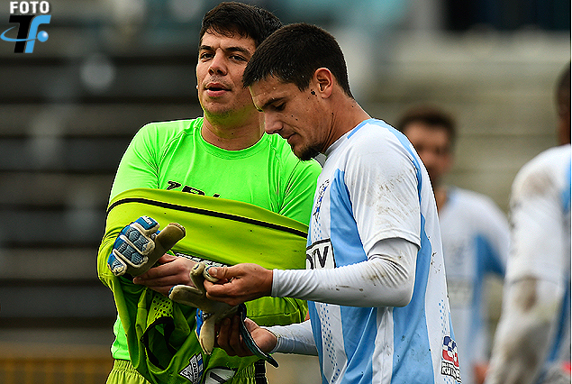 Yonatan Irrazábal expulsado le "presta" los guantes y el buzo a Darwin Torres.