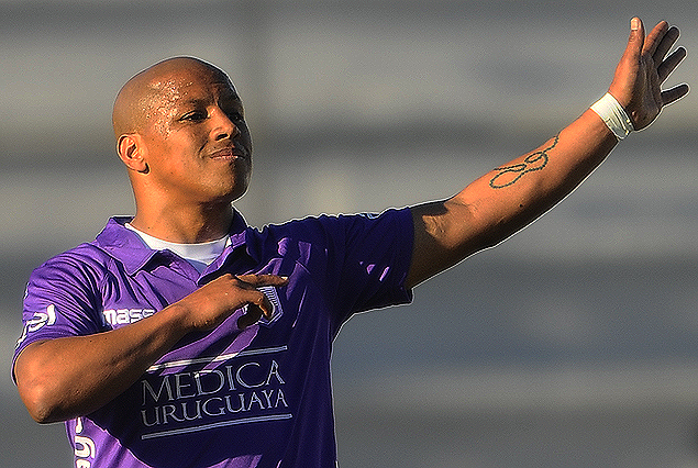 Héctor “Romario” Acuña festejó el golazo de frente a los hinchas de Defensor Sporting en la Tribuna visitante.