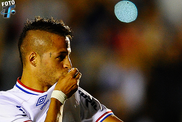 Nicolás López y el beso cargado de gol al escudo tricolor.