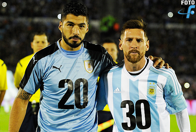 Previo al inicio del clásico, en plena cancha, Luis Suárez luciendo la gloriosa celeste con el 20 y Lionel Messi la histórica albiceleste con el 30, posaron juntos formando el 2030.