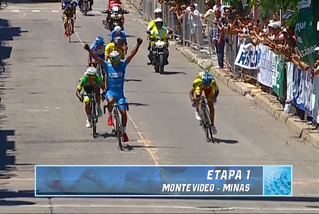 Fabián Aguilar es el líder de las Rutas de América, tras ganar la primera etapa que unió las ciudades de Montevideo con Minas. El representante del Alas Rojas de Santa Lucia logró embalar en los metros finales, tras un trabajo en conjunto con su compañero de equipo Carlos Cabrera.