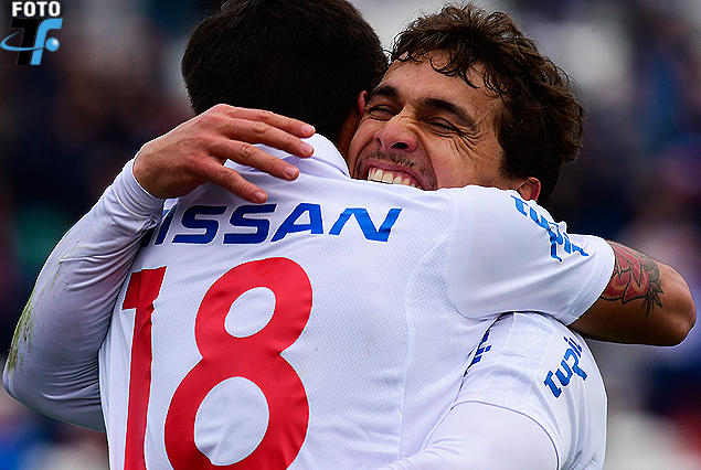 Abrazo de goleadores, Felipe Carballo y Sebastián Fernández.