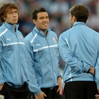 Lugano, Godín y Eguren en la cancha luego de llegar al estadio.