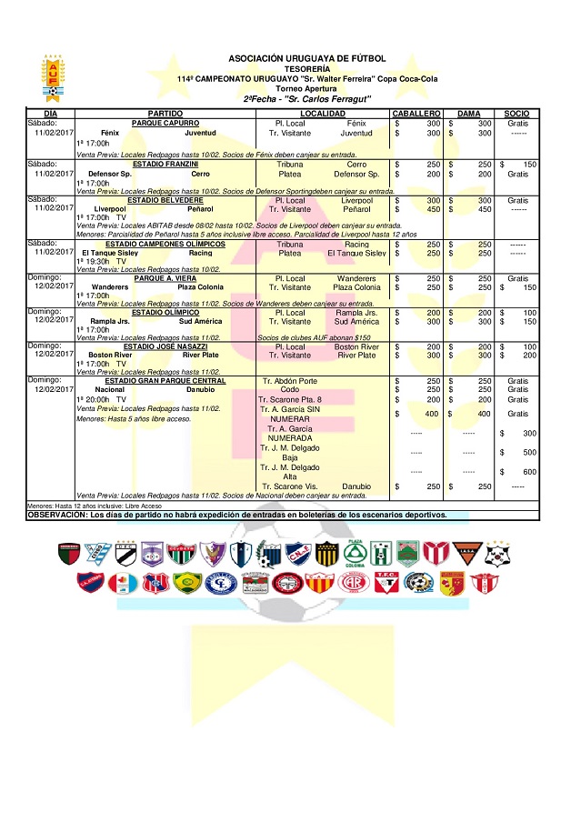El único encuentro que aún no tiene venta de boletos es el de Liverpool – Peñarol, debido a que la reunión preparatoria en la Comisión de Seguridad se lleva a cabo en la tarde de este martes y la comercialización de entradas se realizará desde mañana en Abitab.