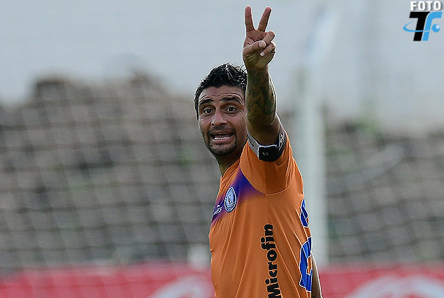 Carlos Bueno en el festejo del gol para Cerro Largo.