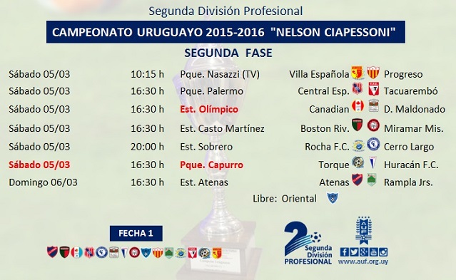 La Mesa Ejecutiva de Segunda División Profesional confirmó Estadio Olímpico como escenario para el choque entre Canadian y Deportivo Maldonado y de esta manera la primera fecha de la Segunda Fase del Campeonato Uruguayo quedó firme.