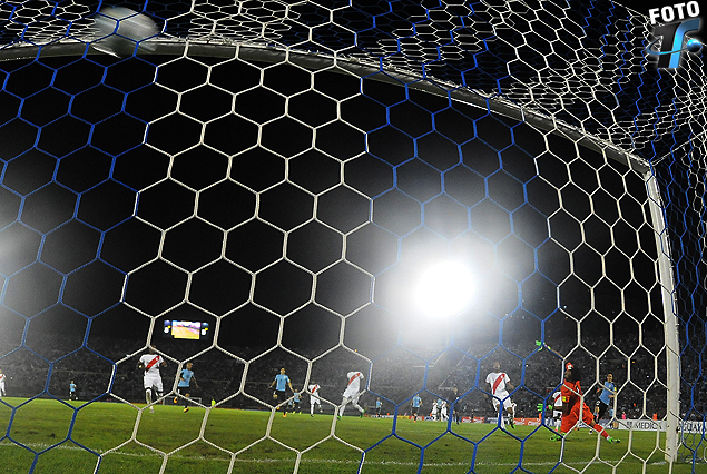 Golazo de Edinson Cavani. La pelota estalla en la red peruana.