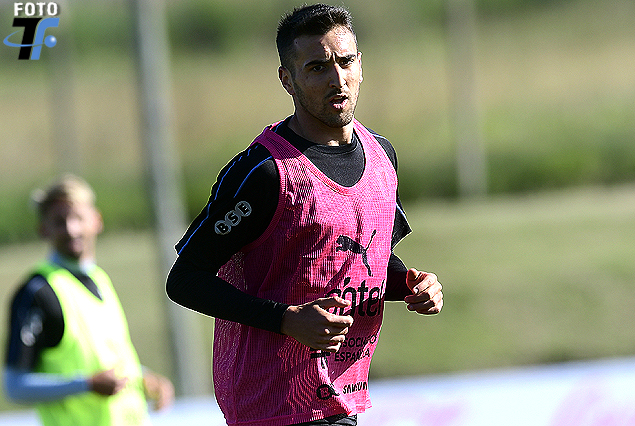 Matías Vecino en pleno trabajo en el Complejo Celeste.