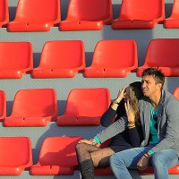 Fernando Muslera junto a su pareja en el estadio de Galatasaray.