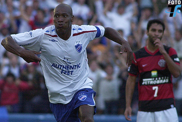 Richard Morales en el festejo del gol a Flamengo en el Gran Parque Central, hizo dos en 2008.