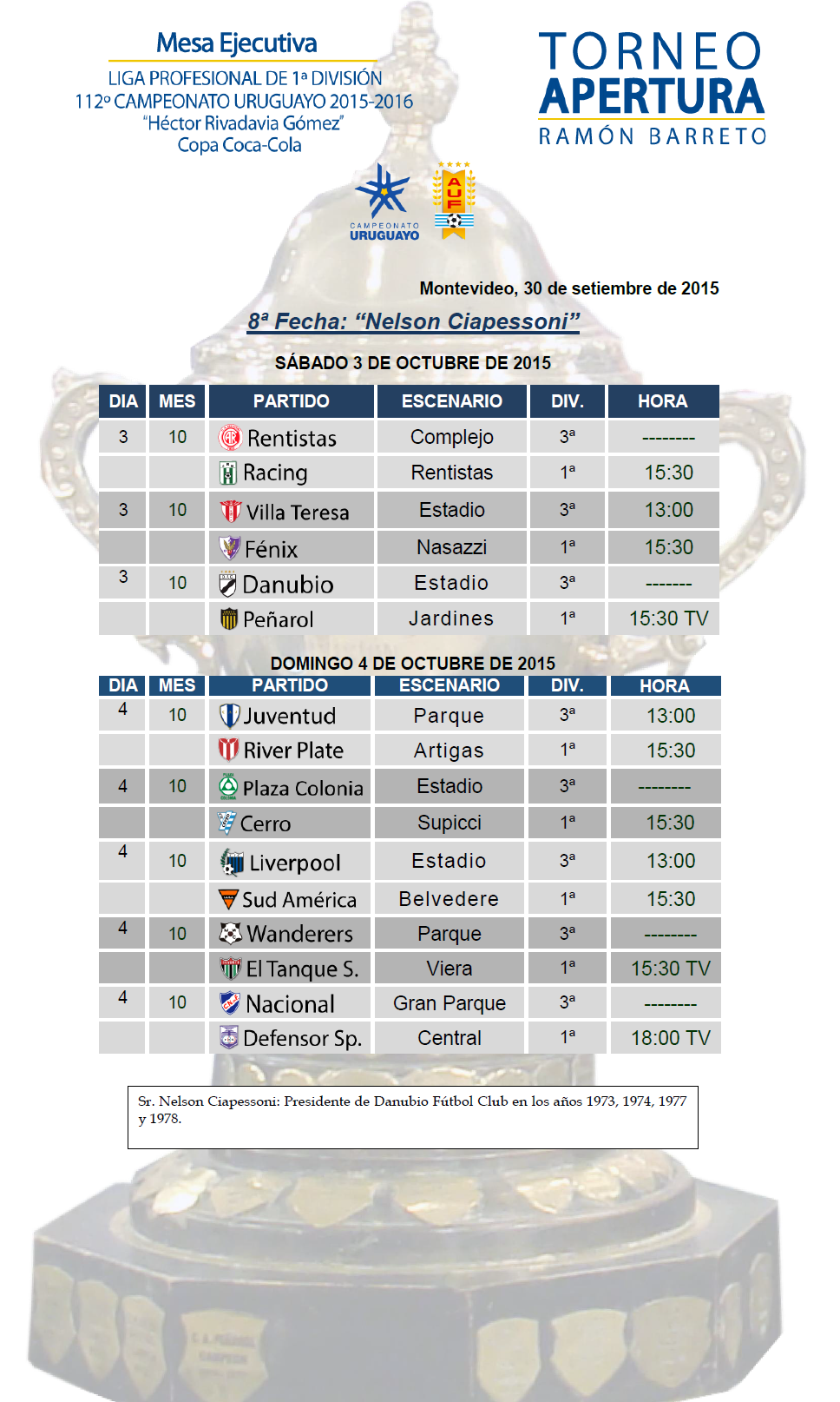 La Mesa Ejecutiva fijó la octava fecha del Torneo Apertura, ratificando el programa de partidos que ya se había confeccionado junto a Tenfield.