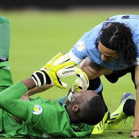 “Perdimos dejando lo mejor en la cancha”, dijo Edinson Cavani, dándole la mano al arquero ecuatoriano.