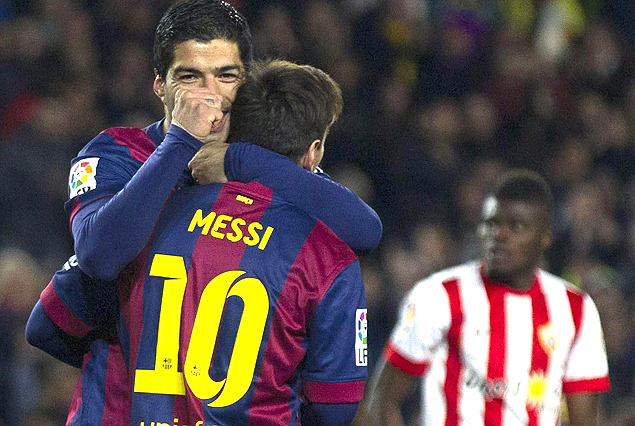 Luis Suárez sigue a todo gol en España. El delantero se anotó con un doblete en el triunfo de Barcelona que goleó 4:0 a Almería, en el Camp Nou, por la 30° fecha de la Liga española, que continúa liderando con cómoda ventaja sobre Real Madrid. Lleva anotados 16 tantos en la presente temporada, 10 en la Liga. “Importantísimos 3 puntos. Gran esfuerzo de todo el equipo!!! A descansar y pensar en el próximo partido!!”, escribió el goleador en su cuenta oficial de Twitter.