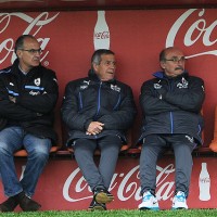 El Dr. Eduardo Belza, gerente deportivo, junto al seleccionador Oscar Tabárez y el Dr. Alberto Pan, jefe de la sanidad de la selección uruguaya.