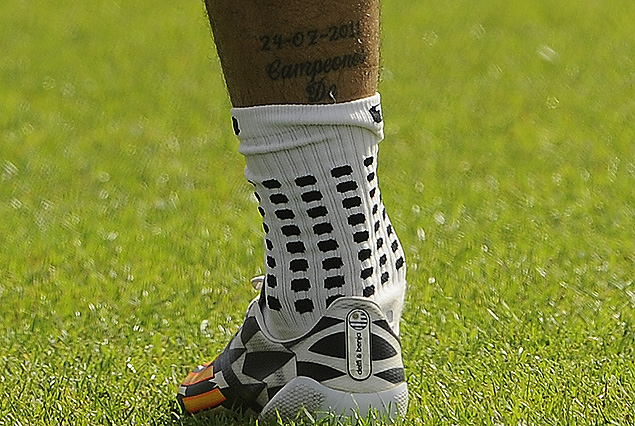 Los zapatos Adidas que usa Suárez. Confeccionados expresamente para él, Luisito pidió que colocar una leyenda que se lee en forma vertical: "Dios te vendiga". Ojalá desde arriba lo ayuden para que se disminuya la injusta sanción.