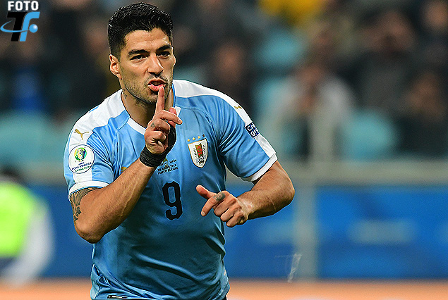 Luis Suárez en el festejo del gol de Uruguay, de penal, con la precisión del goleador.