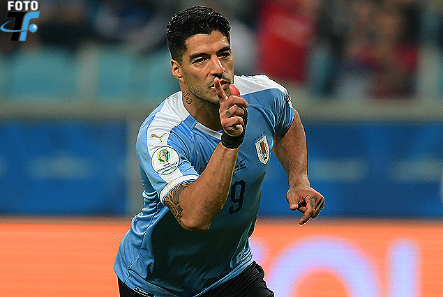 Luis Suárez en el festejo del gol de Uruguay, de penal, con la precisión del goleador.